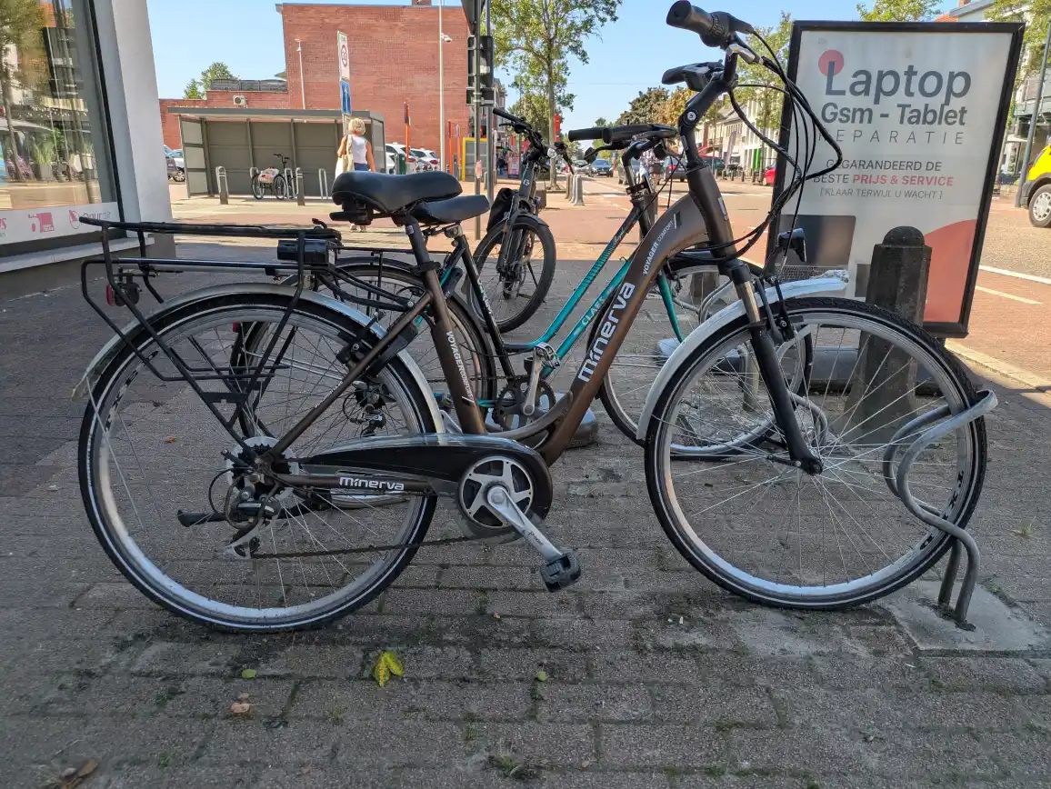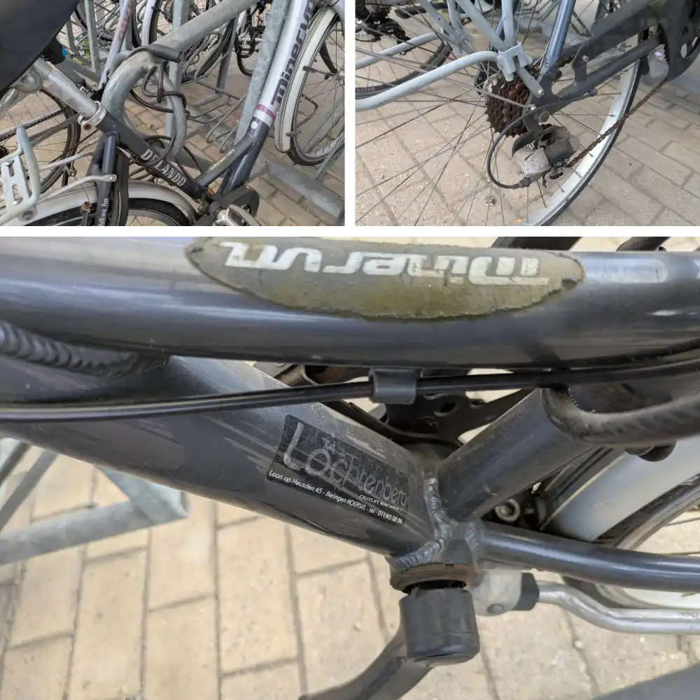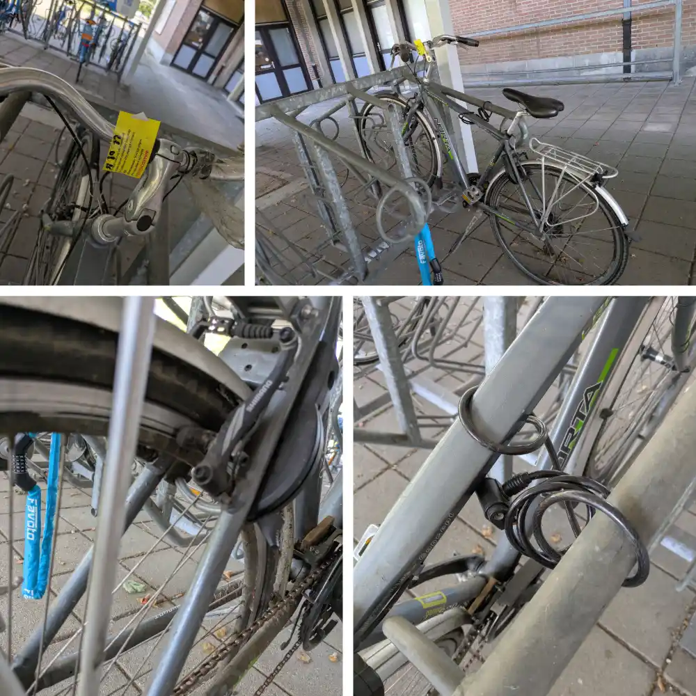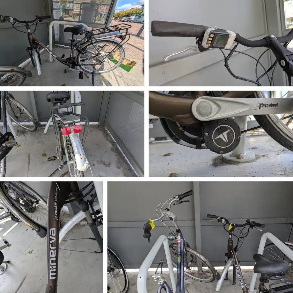 | 0029 | 58812 | Minerva Voyager Comfort | ![]() | Open googlemaps | Geen Weesfiets | 12-sep-25 | 20-sep-25 | 17-okt-25 | nieuwe fietsenstalling langs Waterleidingsstraat/Koolmijnlaan | 15/10/25: Mail van TW dat de fiets ingepland staat om overmorgen op te halen terwijl deze al is opgehaald. 14/10/25: op 12/10 stond de fiets (samen met 58810 en 58811) onder de fietsstalling met allemaal dezelfde ophaaldatum, 13/10 was de fiets weg. (ook idem 58810 en 58811) 23/09/25: vastgesteld dat de fiets gelabled was maar geen bevestiging van TW gekregen, fiets ID 58811 die ernaast staat heeft die bevestiging wel gekregen. | 20/10/2025 - 08.18 (Udo Willems) : fiets niet gevonden 15/10/2025 - 08.32 (Lotte Troosters) : gelabeld tot 12/10 > inplannen en ophalen 15/10/2025 - 08.08 (Lotte Troosters) : herinnering verstuurd naar wijkagent 22/09/2025 - 07.45 (Lotte Troosters) : doorgestuurd naar wijkagent om te labelen / foto's in bijlage | Merk: Minerva Voyager Comfort Voorste wiel ontbreekt, Fiets staat onder nieuwe fietsenstalling langs Kleuterweg/Koolmijnlaan | ![]() |