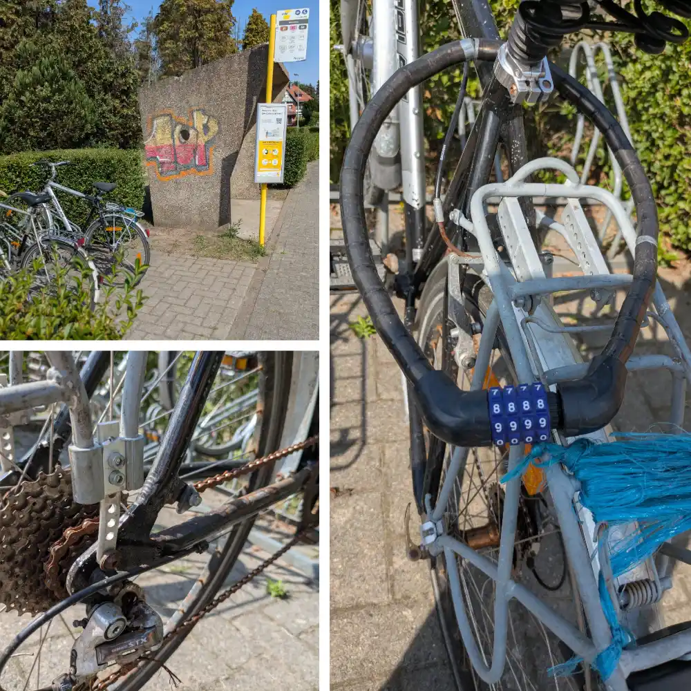 | 0010 | 58161 | Merkloos | ![]() | Open googlemaps | Geen Weesfiets | 06-aug-25 | 21-aug-25 | Fietsenstalling station Heusden | 23/09/25: mail naar TW met melding dat de fiets niet meer op locatie staat, fiets is nooit gelabeld geweest. 11/09/25: mail naar TW gestuurd om de politie opnieuw te vragen fiets te labelen. Na 2,5 weken nog steeds geen label. Fiets 58518 (staat ernaast) werd enkele dagen geleden wel gelabeld. TW meldt dat er gewacht moet worden tot de politie de mogelijkheid heeft om te labelen. Fiets is in 2024 al eens gemeld geweest maar nooit opgehaald, dit is een fietswrak. | 24/09/2025 - 07.43 (Lotte Troosters) : melder laat weten dat deze fiets niet meer op de locatie staat 25/08/2025 - 09.00 (Lotte Troosters) : foto's in bijlage / doorgegeven aan politie om te laten labelen | Merk: Merkloos Beide banden plat, Geen frameslot, niet vastgemaakt aan fietsbeugel, Fiets staat al maanden in deze stalling, Ketting zit niet meer rond de tandwielen. Voorlicht ontbreekt, Fietsenstalling station Heusden | ![]() | |